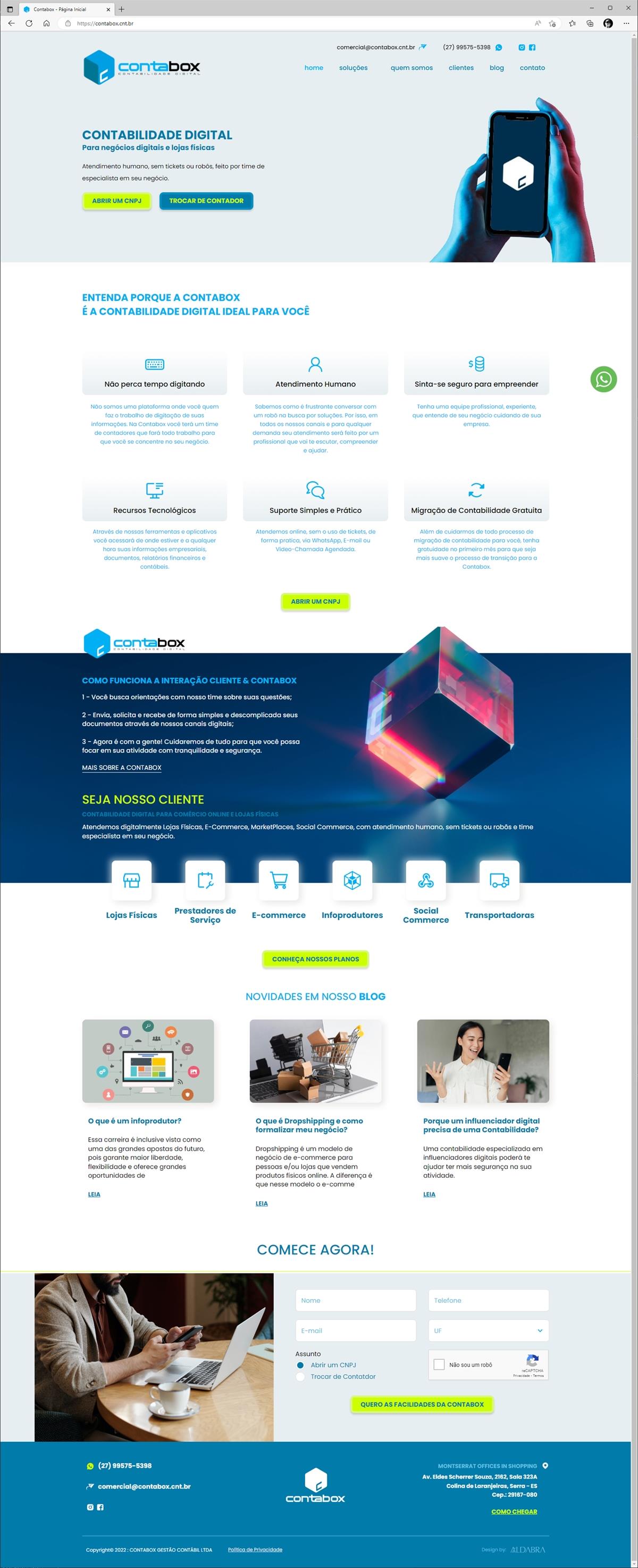 Site desenvolvido para a empresa de contabilidade digital: ContaBox