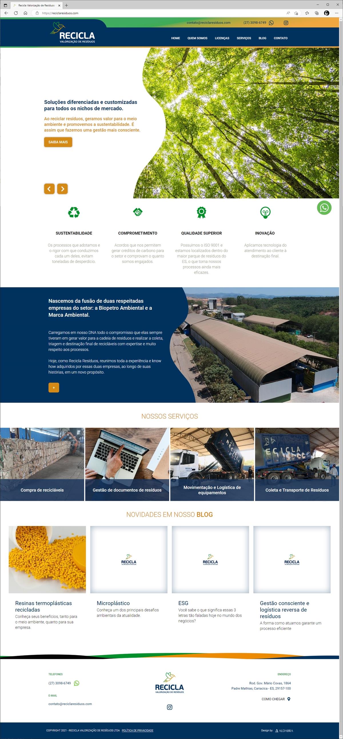 Criação de site realizado para a empresa Recicla Resíduos